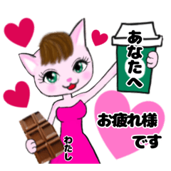 ピンクネコのラブチョコ 雛祭り 猫の女の子 Line スタンプ Line Store